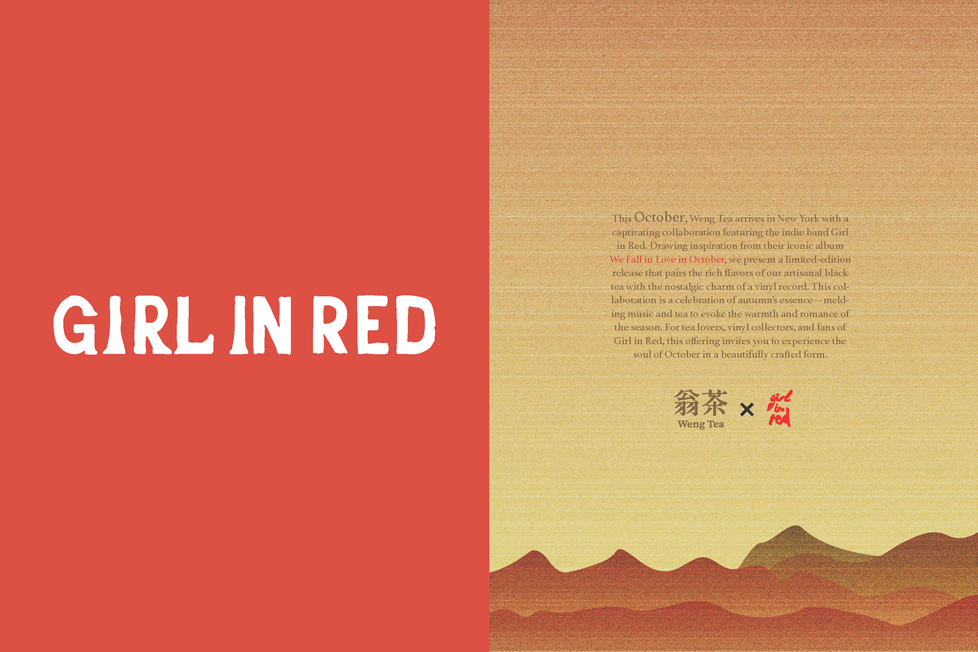 This October, Weng Tea arrives in New York with a special collaboration inspired by Girl in Red’s We Fall in Love in October. This limited release blends our artisanal black tea with the warm, nostalgic spirit of vinyl—celebrating the romance and glow of autumn. For tea lovers, vinyl collectors, and fans of Girl in Red, this edition offers a crafted taste of October.